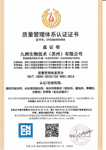 九洲公司成立于2003年,始终专注于生物高分子领域的创新研发及环保新材料的应用开发,致力于为客户提供多样化、定制化的化学品全套解决方案,是一家集研发、生产、销售、服务为一体的高新技术企业。旗下设立两家全资子公司,九洲检测服务(苏州)有限公司及浙江九本环保技术有限公司。